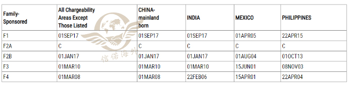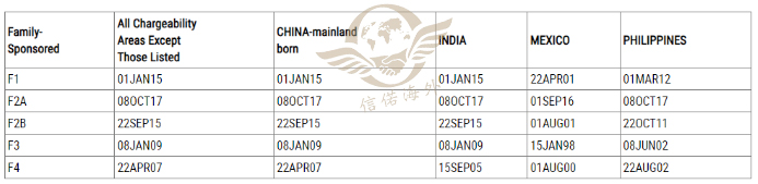 中国大陆出生亲属移民排期表(表B):