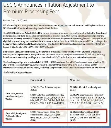 美国移民局(USCIS)宣布了多项加急处理费的涨价,包括I-907表(申请加急处理)的申请费。此次涨价是为了适应处理成本和需求的增加。