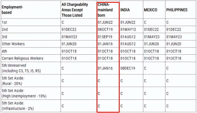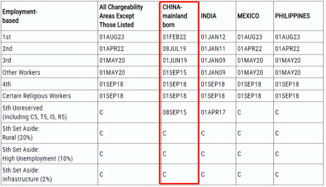 2023年8月美国职业移民排期表(表B)
