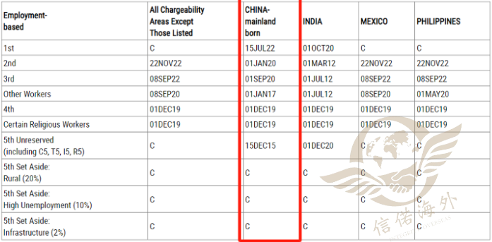 EB-3 (非技术劳工):2017年01月01日,原地踏步;